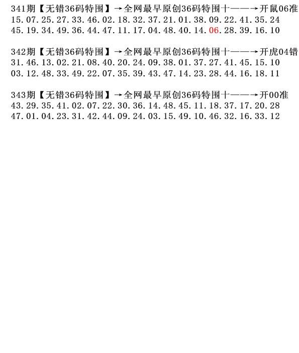 341期: 《 小数+4头》开:鼠06 |